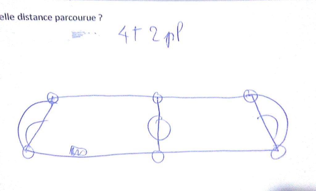 Le terrain étant suffisamment grand et le maniement du ballon au pied diversement maîtrisé, les distances parcourues individuellement sont rarement des nombres entiers de tours, pas même un tour pour certains élèves. Le problème s’impose donc naturellement aux élèves : « Nous ne pouvons pas savoir quelle équipe a gagné si on ne compte que les tours entiers. »