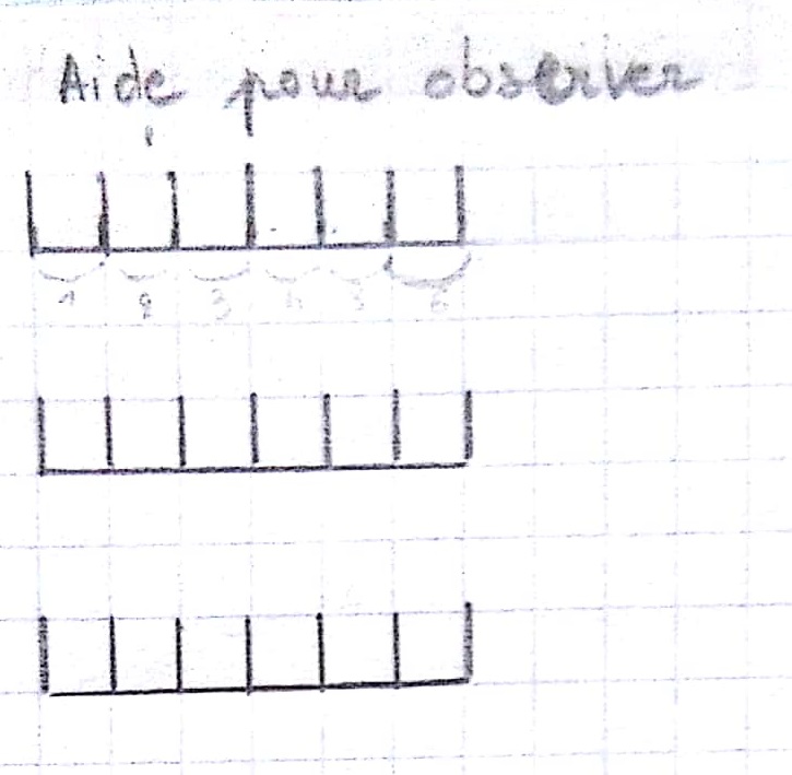 Cette séance est menée dès le lendemain pour tirer bénéfice de l’engagement et de l’attente des élèves. L’enseignante reprend la question de la veille, enquête auprès des élèves pour détecter une éventuelle nouvelle idée, puis finalement relance elle-même la réflexion en soumettant à la classe une trace 6 sélectionnée dans le recueil de la veille.