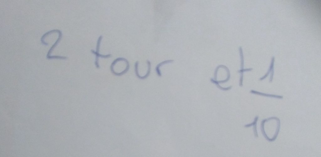 - « 10 tours et 8 plots, c’est 10 tours, plus un tour et 2 plots » ,