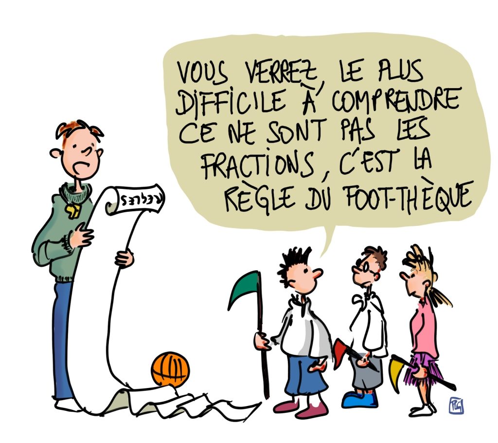 Cet article a pour ambition de proposer aux professeurs des écoles une situation motivante pour les élèves, qui donne du sens aux fractions et qui convoque les apprentissages de deux disciplines, mathématiques et EPS 1, lors d’allers-retours cohérents entre la salle de classe et la cour de l’école. L’enjeu principal étant d’aider tous les élèves à comprendre la notion de fraction puis celle de nombre décimal, la séquence présentée peut être engagée tôt dans l’année de CM1 afin de faire côtoyer les fractions sur un temps long.